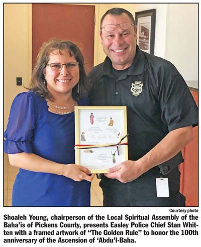EASLEY — In honor of the 100th anniversary of the passing of ‘Abdu’l-Bahá, who departed on Nov. 27, 1921, the Baha’is of Easley and