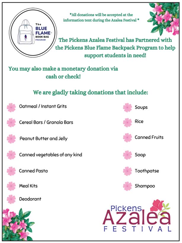 PICKENS — The Pickens Azalea Festival gives back to the Pickens community each year once the festival is over. The