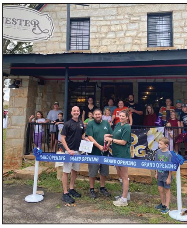 Hester Store & Co., located at 1735 Hester Store Rd. in Easley celebrated its official grand opening Sept. 27 and what a celebration it was. The event was filled with familiar faces, joyful memories, delicious treats, and a strong sense of community spirit. Pictured Pickens Chamber Board Member David Michel is Pickens with store owners David Cody Rathbon and Tasha Diann Carpenter, as the duo cut the ribbon. The new owners, who are are veterans and a brother and sister team, are beginning an exciting journey, where there dedication and hard work have brought new life to the historic building, that has been a part of the community for generations.
