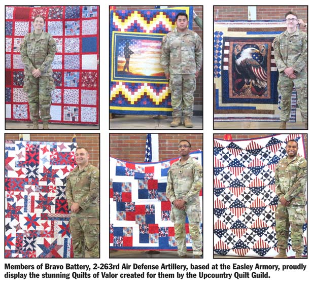 EASLEY – The Upcountry Quilt Guild presented 83 Quilts of Valor to members of the Easley National Guard on November 22 at the Easley Armory.