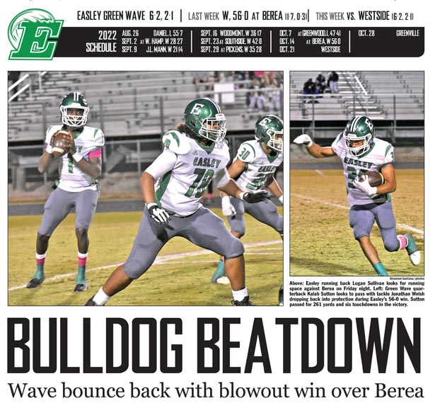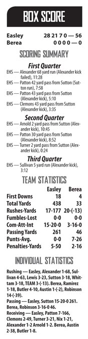 GREENVILLE — It was a record-setting night Friday night as Easley shut out Berea 56-0 last week.