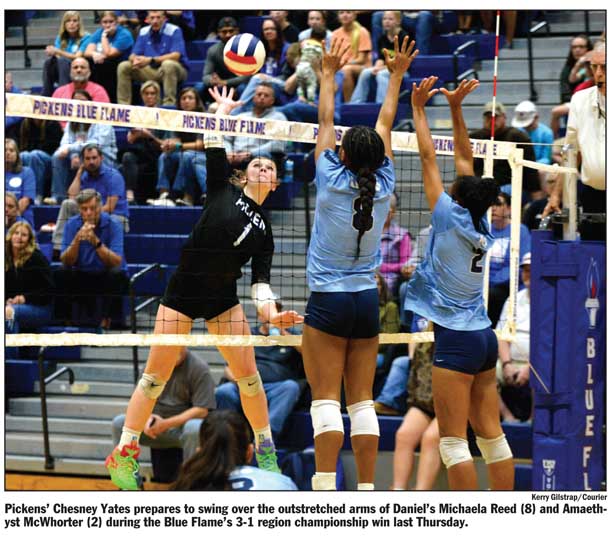 PICKENS — One year removed from dropping its first region championship in over a decade, the Pickens High School volleyball team looked to reclaim the Region 2-4A championship against Daniel last Thursday.