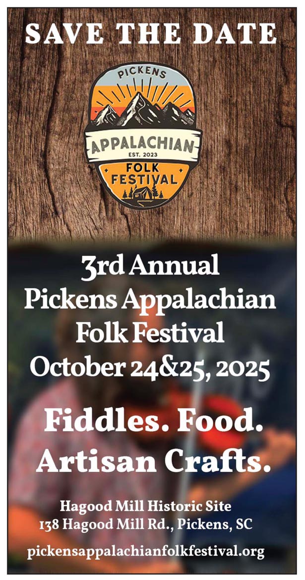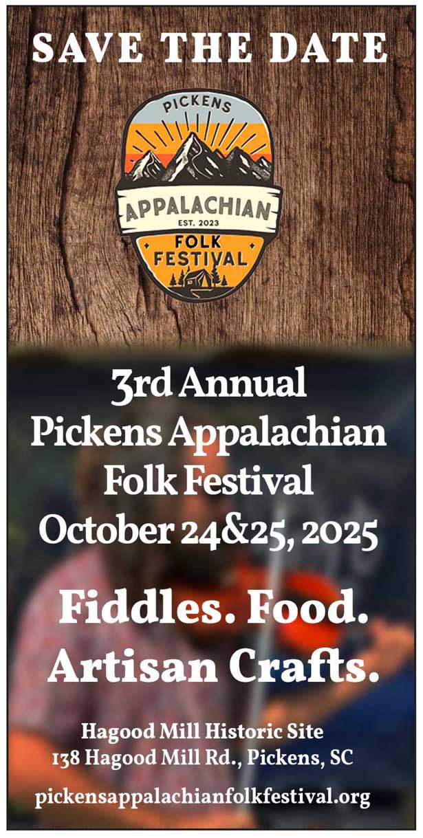 The festival will be a two-day event, taking place Friday and Saturday, Oct. 24-25, at 138 Hagood Mill Road in Pickens. The festival is free, but attendees are asked to bring their own chairs.