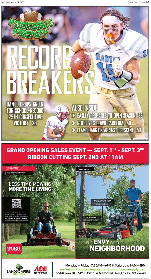 All this and so much more in this week’s FOOTBALL FRENZY, exclusively in the Pickens County Courier NOW ON SALE! Get the print edition at a grocery, drug or convenience store near you. On sale all over Pickens County!