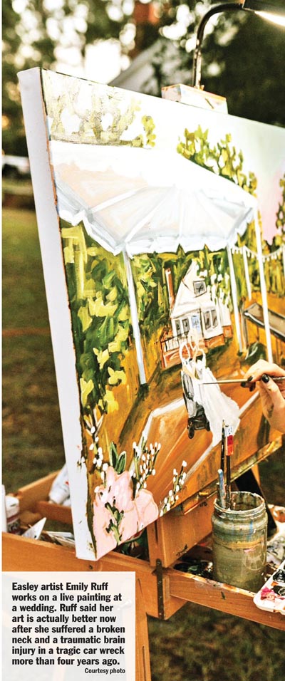 EASLEY — As strange as it may sound, Easley artist Emily Ruff says her art is actually better now than it was before she suffered a broken neck and traumatic brain injury in an accident some four and a half years ago.