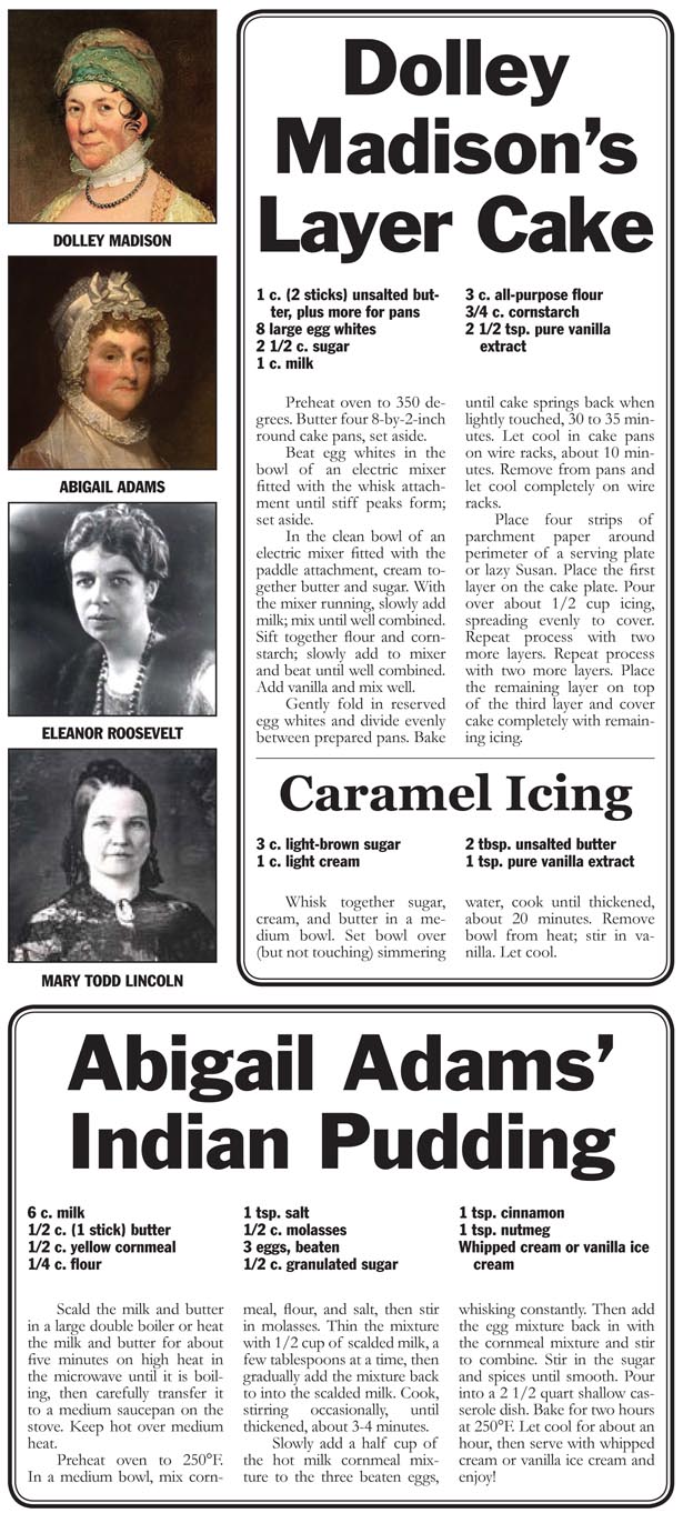 Dolley Madison’s Layer Cake was often served at the White House. She was said to be a genial hostess and enjoyed entertaining.