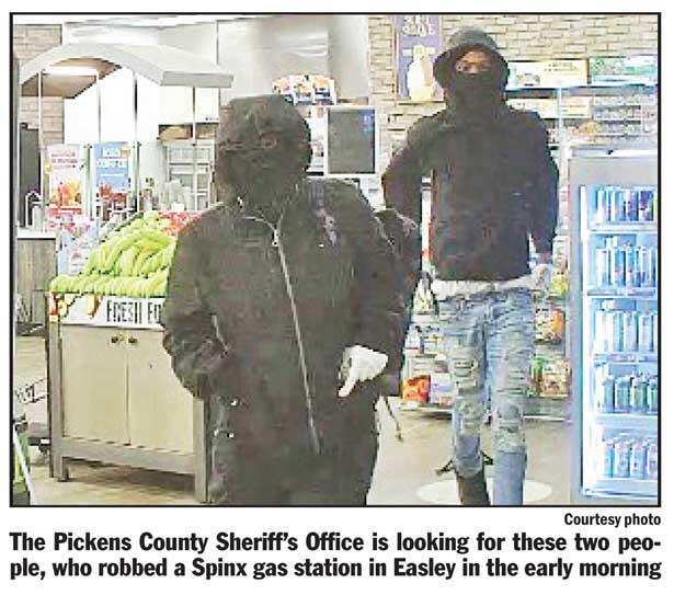EASLEY — The Pickens County Sheriff’s Office is seeking two suspects who robbed an Easley convenience store last week.