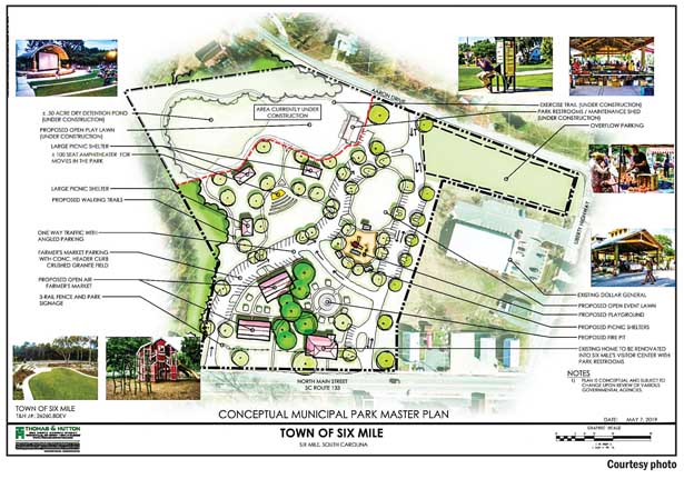 Six Mile town clerk Rita Martin said last week the town is working with two engineers and an architect on design plans for the Six Mile Community Park on Main Street. “The first thing we’re going to start doing is the pavilion,” she said. “And we’ve got drawings, architectural drawings, but the holidays have sort of put a stop there. But hopefully, once the year gets rolling, hopefully we’ll actually get to start on that. We’ve not actually constructed anything out there, but if you take a look, you can see little markers and where they’ve cut limbs off of trees to actually be ready to have it start to go up.”