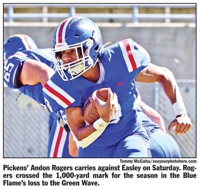 The Pickens offense had plenty of success moving the ball on Easley, but continued stops in Green Wave territory piled on top of each other as the game went on, and the Blue Flame couldn’t afford to be slowed down on a day where their defense struggled to contain Easley quarterback A.J. Brown.