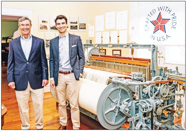 Alice Company, a family-owned diversified holdings company based in Greenville, recently donated a 1954 Hunt fly shuttle loom to the Easley Area Museum on South Pendleton St. Formerly known as Alice Manufacturing, the company produced premium quality yarns and fabrics for nearly a century in Easley. Installed in the company’s Elljean plant in 1954, the loom was later moved to the corporate headquarters on East 1st Avenue in Easley, where it served as a focal point in the lobby of the building. Alice Company president and CEO E. Smyth McKissick IV, right, is the fifth generation of the McKissick family to run the company. His father, E. Smyth McKissick III, left, remains chairman. Courtesy photo