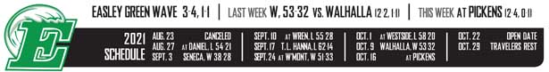 Down two scores, the Blue Flame kept to their hard running approach and picked up big gains on runs by Rogers and McCollum. Getting back inside the Easley 30, the Blue Flame faced consecutive stops by Easley, forcing them to go to the air, when Green Wave linebacker Noah Pierce sacked Ford for a five-yard loss.