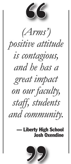 “I am very thankful to Mr. Arms and his support and leadership toward my children during their time at Liberty High,” Whelchel said. “He is full of school spirit and is a wonderful representative for the school.”
