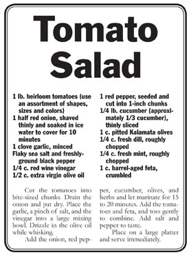 These recipes range from the very simple to the more complicated, but all are good. And if you don’t have time to prepare any of this, a simple tomato sandwich is very hard to beat.