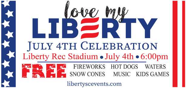 Liberty will present its Love My Liberty July 4 celebration beginning at 6 p.m. Sunday at the Liberty Recreation Stadium. The event will feature hot dogs, water, snow cones, kids’ games, music and fireworks.