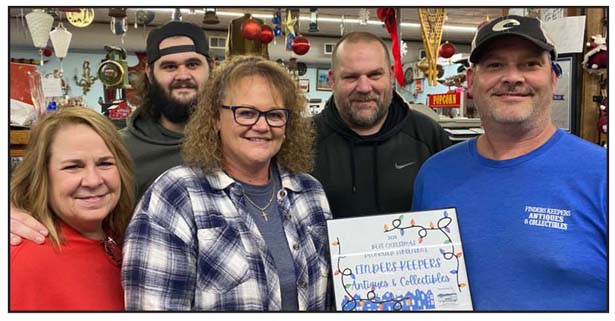 Congratulations to The Greater Pickens Chamber of Commerce 2024 Best Christmas Decorated Storefront winner Finders Keepers Antiques and Collectibles. The store is located at 127 W. Main Street in Pickens. Finders Keepers specializing in the hard to find antiques, oddities, vintage, primitives and more. The are open on Wednesdays 9:30 a.m. – 6 p.m., on Thursdays and Fridays 10:30 a.m. – 6 p.m. and on Saturdays 11:30 a.m. – 6 p.m. Pictured are Nathan and Amanda Gamble, Brent Fisher, Dakota Gamble and Jacquelyn Gamble.