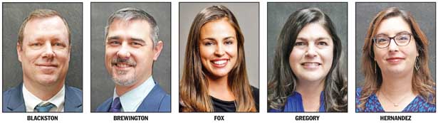 Brad Blackston (director of adult education), Chris Brewington (principal, East End Elementary School), Carrie Gregory (director of health services) and Lenette Hernandez (director of multilingual services) will begin in their new