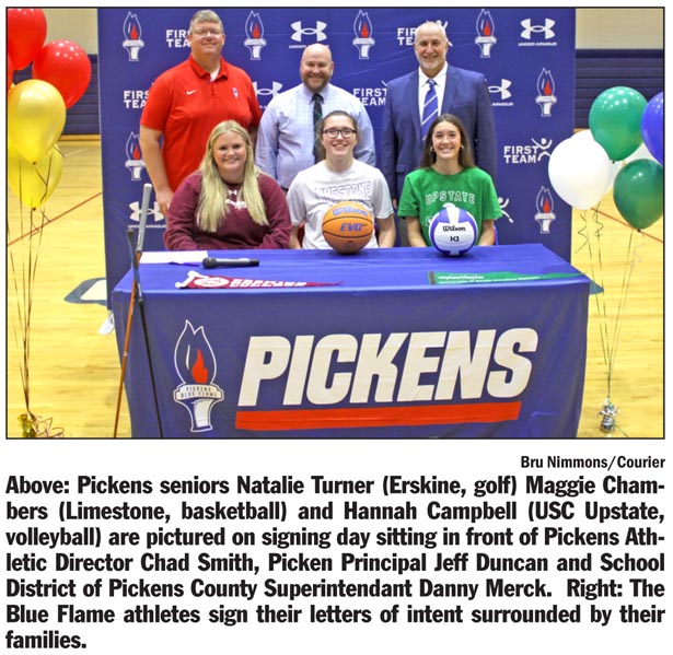 PICKENS — Pickens High School celebrated a successful signing day last week with three student-athletes committing to continue their academic and athletic careers at the next level.