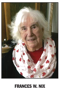 LIBERTY — Mrs. Frances W. Nix, 91, of Liberty, went to be with her