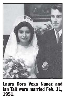 Nunez and Henrique Vega Maco, Dora later met Ian Tait, the English head engineer at W.R. Grace’s sugar mill in Cartavio. Dora and Ian fell in love, and within two years of Ian’s arrival, on Feb. 11, 1951, in Cartavio, they were married in a small Catholic church in Cartavio.