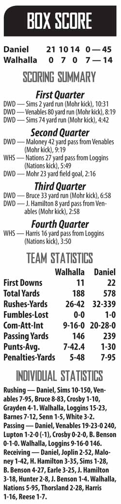 “I challenged the kids this week just like I challenge them every week,” Daniel coach Jeff Fruster said. “I challenged them to give the best effort and play the best football, and that’s what they did tonight.”