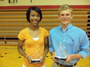 Jake Goodnough and Amber King were recently named Liberty High’s Male and Female Athletes of the Year. Goodnough is a three-sport athlete who was named Region Player of the year and All-State in both track and cross country, finishing third at the state XC meet and second in the 1600m run at the state track meet. He was also chosen to run in the Shrine Bowl Run. King was named the Region I-AA Female Athlete of the Year after earning region player of the year and all-state honors in volleyball, basketball and track. She earned two silver medals and one state championship, in the triple jump, in the recent state track meet.