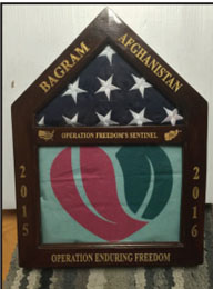 faded Baptist Easley flag, as well as an American Flag. Both flags flew proudly over Bagram during his duty in Afghanistan.