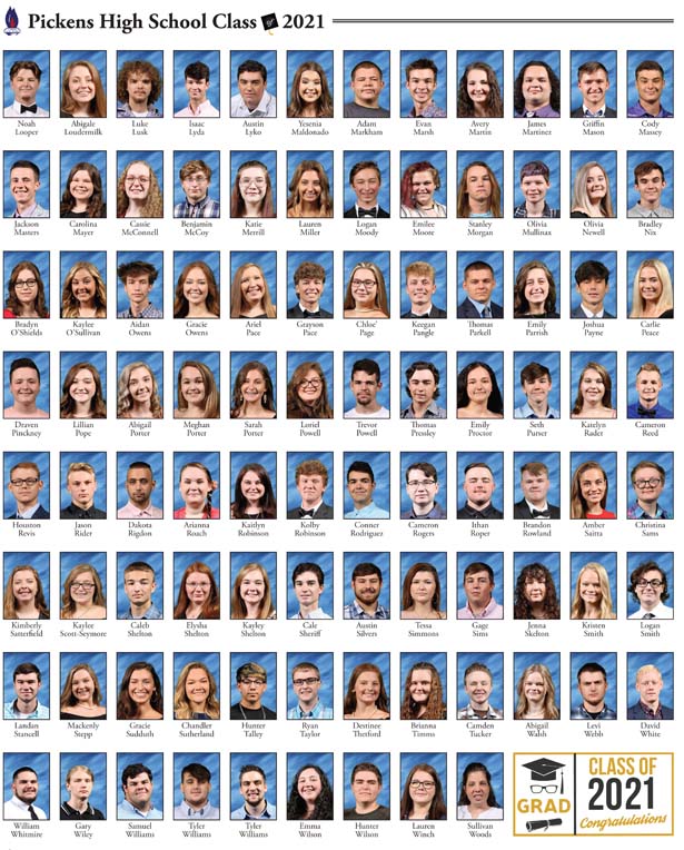 The following is a list of awards, honors, recognitions and scholarships recently presented to students at Pickens High School, as provided by the School District of Pickens County.