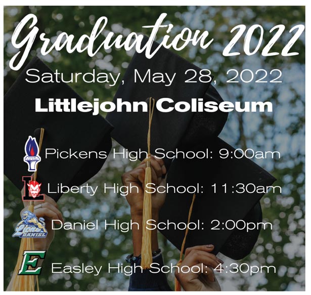CLEMSON — More than 1,000 Pickens County high school seniors will cross a stage into their future at graduation ceremonies at Clemson’s Littlejohn Coliseum on Saturday.