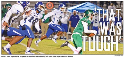 Easley answered with a five-play, 65-yard drive. Quarterback Dallas Odom hit Ethan Boyles on third and five for 18 to the Woodmont 42. On the next play, Jeremy Harried, one of 21 Easket seniors honored on senior night, scooted untouched for a 42-yard