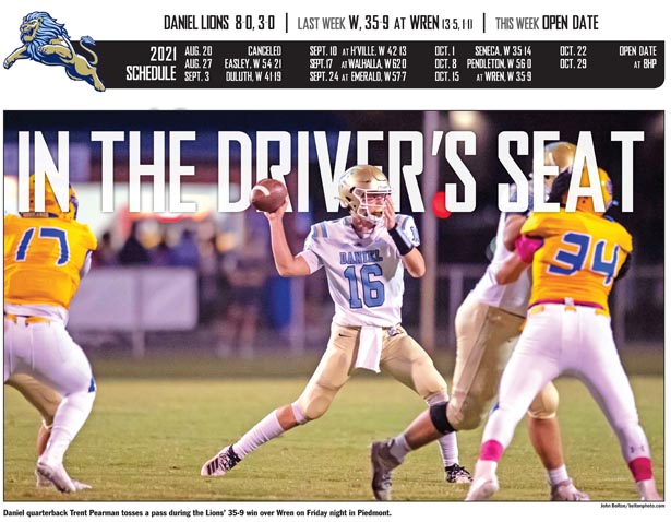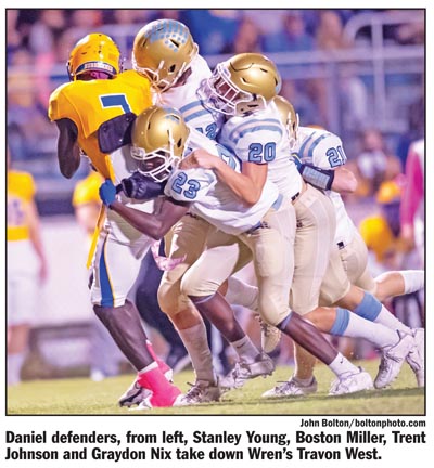 PIEDMONT — Coming off its 17th straight win the week before, the Daniel High School football team had plenty of confidence going into Friday’s matchup at Wren.