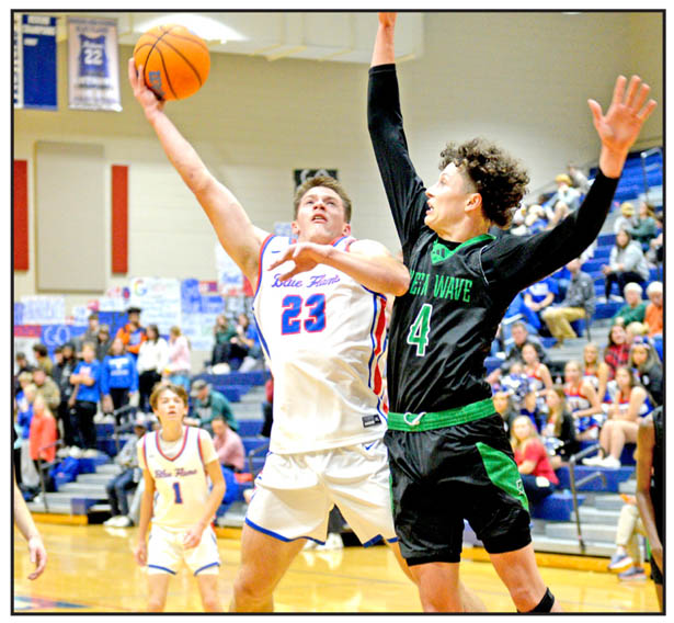 It proved to be Easley’s night on Friday against Pickens as both the Green Wave’s boys and girls basketball squads picked up wins over Pickens. Below: Easley’s Josalynn Gamble puts up a shot over a Pickens defender in the Wave’s 33-25 win. Above: Easley’s R.J. Stack defends a layup from Pickens’ Riley Owens during the Green Wave’s 76-57 win. Kerry Gilstrap/Courier