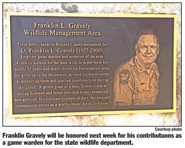 PICKENS — A remembrance for legendary game warden Franklin Gravely will be held Wednesday, Oct. 23, in northern Pickens County. The public is invited to attend the program.