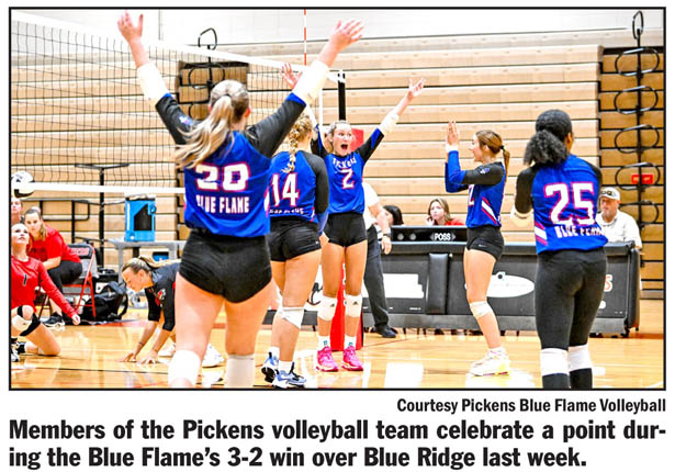 GREER — Blue Flame volleyball travelled to Blue Ridge High School on last Tuesday night to take on the Tigers in their first Region 2-4A matchup. In set one, the Blue Flame were quickly down four points, but rallied back to tie the set at 10