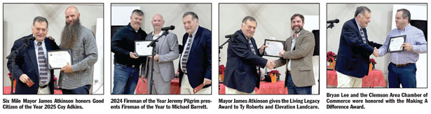 SIX MILE — The town of Six Mile held its annual Christmas dinner on Dec. 5 at the Gap Hill Church of God’s Life Center on S.C. Highway 183. During the event, the town presented its annual awards to outstanding community members.