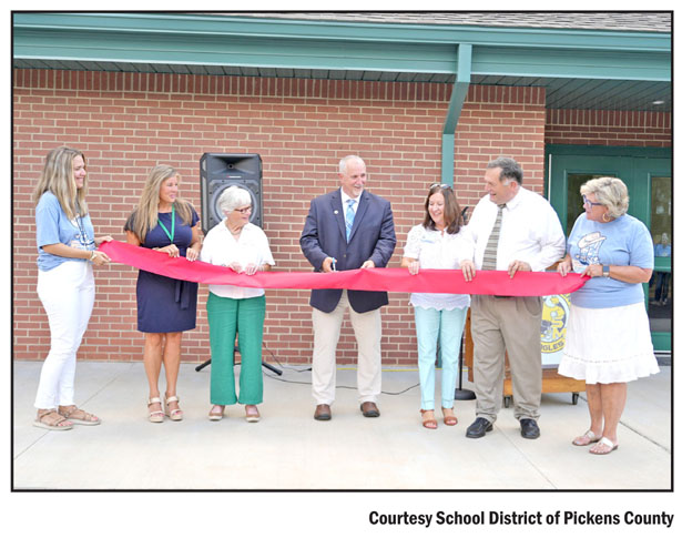 On July 30, Six Mile Elementary held a ribbon-cutting ceremony for its new addition. Construction on the new wing began in 2023 and adds 15,000 sqaure feet of space to house preschool classes at the school. This new wing is open and began serving students when the School District of Pickens County opened its school year on Aug. 1. Pictured above: SDPC Superintendent Danny Merck cuts the ribbon for the new wing. Below: One of the new classroom spaces in the recently completed wing is shown.