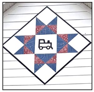 Museum. When museum volunteer, Jackie Bacon, took a barn quilter painting class at Urban Central, offered by UHQT, she chose the Ohio Star pattern for her block and red, white, and blue as the colors. She was