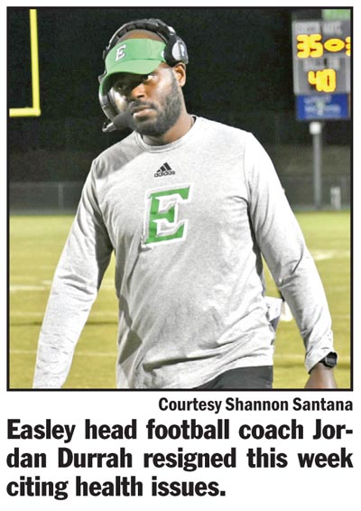 history, Easley head football coach Jordan Durrah stepped down from his position on Monday citing health issues.