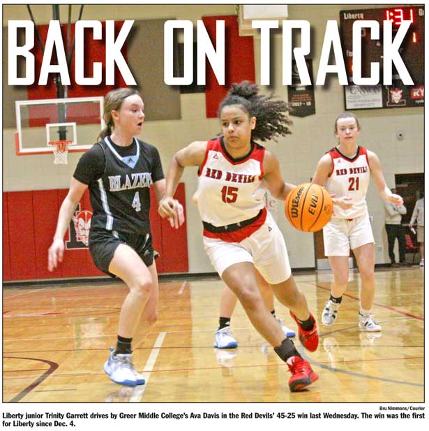 LIBERTY — Going over a month without a win, the Liberty girls’ basketball team looked to get back on track at home against Greer Middle College last Wednesday.