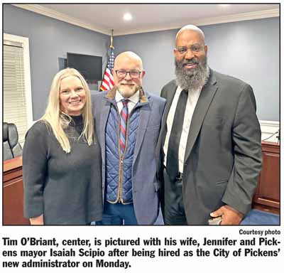 After an executive session at its monthly meeting Monday night, Pickens City Council unanimously voted to hire former Aiken economic development director Tim O’Briant as