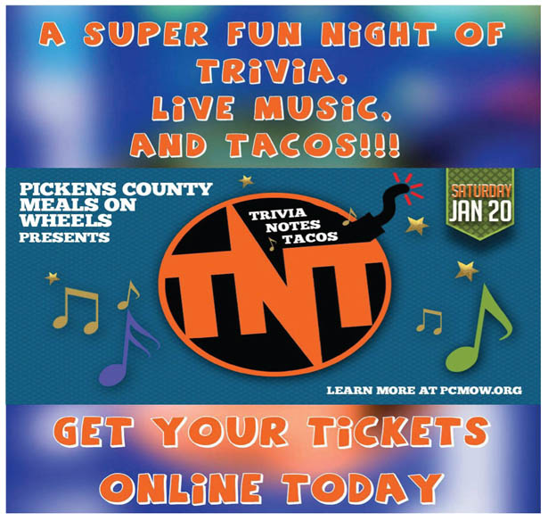 LIBERTY — Pickens County Meals on Wheels is planning a night of trivia, live music and tacos on Saturday, Jan. 20.