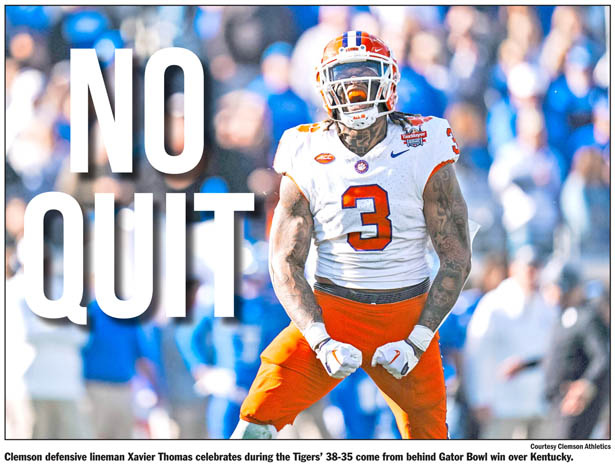 JACKSONVILLE, Fla. — Clemson’s Phil Mafah scored on a 3-yard touchdown run with 17 seconds to play Friday, lifting Clemson to a 38-35 victory over Kentucky to win the Gator Bowl in Jacksonville, Fla.