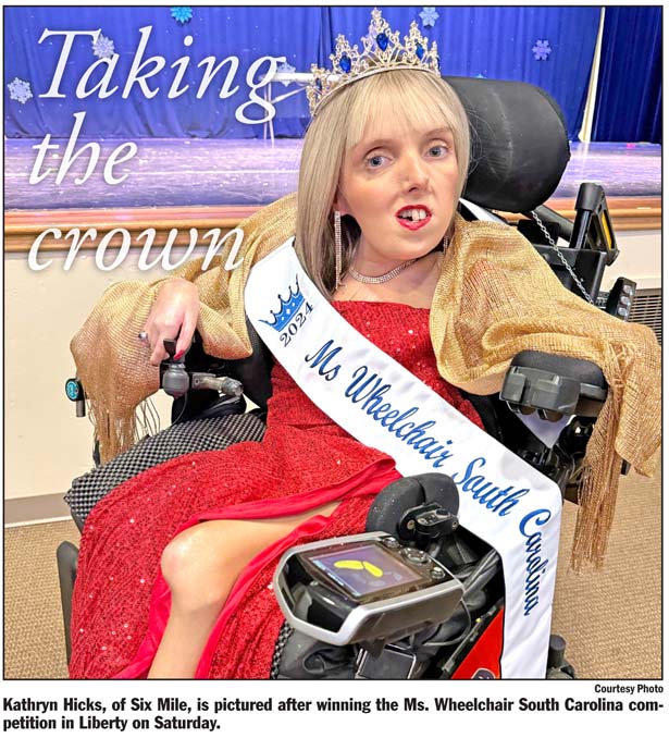 Kathryn Hicks, of Six Mile, took first place at the competition winning the crown over four other disabled South Carolinians. Hicks will now travel throughout