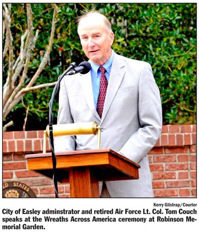EASLEY — Hundreds of people gathered to attend the Wreaths Across America ceremony in the Veterans Garden of Honor at Robinson Memorial Gardens in Easley on Saturday.