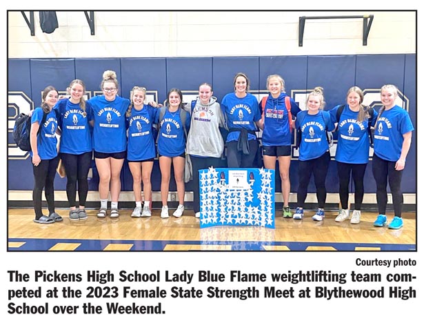 BLYTHEWOOD — The Pickens High School Lady Blue Flame weightlifting team made school history on Saturday at the SCHSSCA Female State Strength Meet at Blythewood High School.