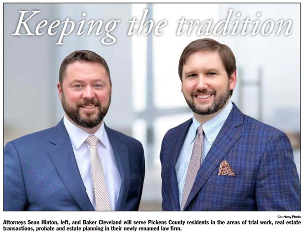 PICKENS — The longtime local law firm formerly known as Acker Lambert Hinton P.A. is now Cleveland Hinton.