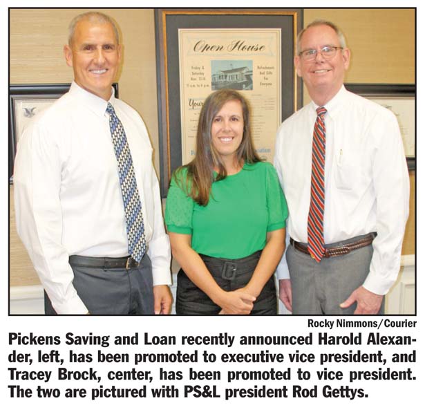 PICKENS — The Pickens Savings and Loan Board of Directors recently announced two promotions. Harold Alexander has been promoted to executive vice president, and Tracey Brock is the bank’s new vice president.