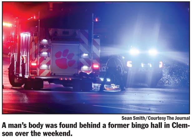 CLEMSON — Several agencies are investigating after a man’s body was found behind a former bingo hall in Clemson on Sunday.