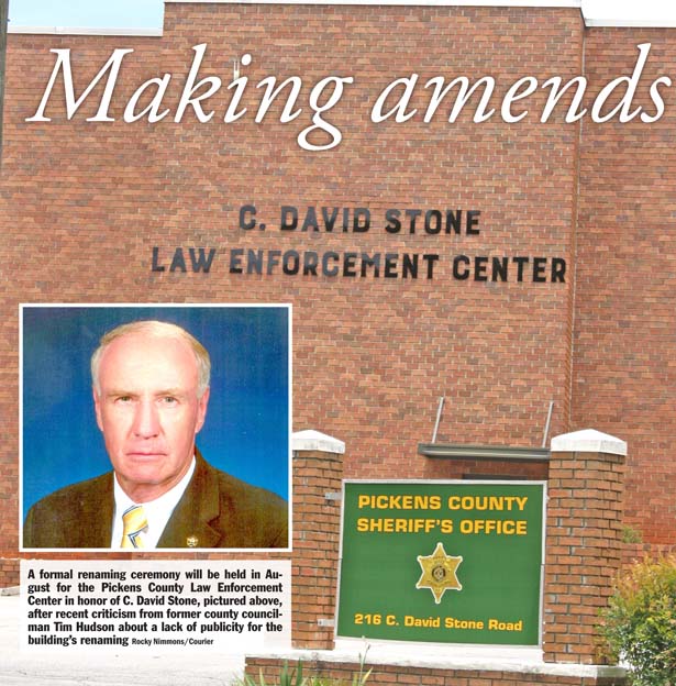 PICKENS — Pickens County administrator Ken Roper said a formal ceremony to celebrate the renaming of the county’s law enforcement center in memory of longtime sheriff David Stone will happen in August after recent criticism from a former elected official.