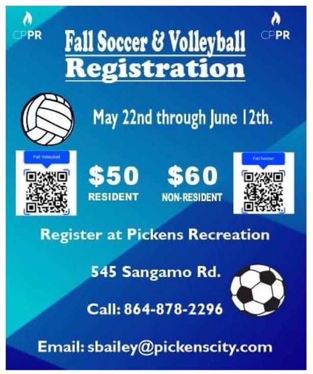Fall Soccer and Volleyball registrations are in full swing. Come by the Rec Dept, Scan the QR code or call us for more information.