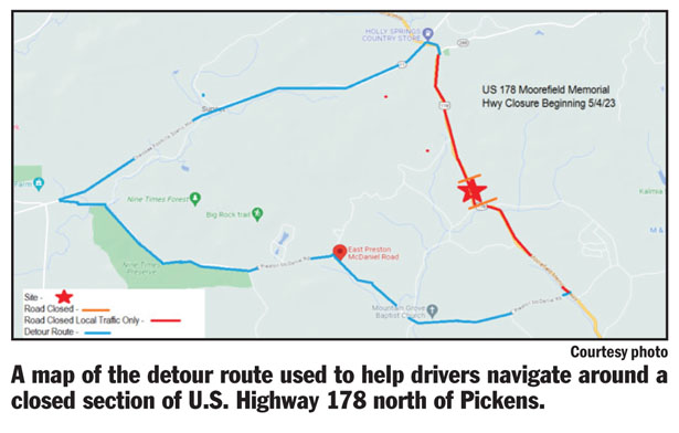PICKENS — About 15 miles of U.S. Highway 178 north of Pickens has been closed this week.